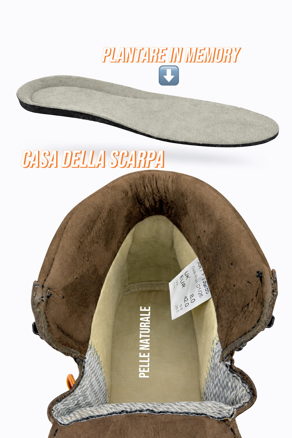 Tomaia: Nabuk ingrassato idrorepellente col. Marrone
